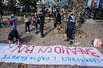 автор: Любомир Бенковски - Бенджи Протестиращите опъват плаката на оградата на ВИНС-а пред безразлично преминаващите студенти |