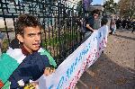 автор: Любомир Бенковски - Бенджи Протестиращите опъват плаката на оградата на ВИНС-а и издигат лозунги |
