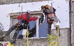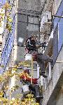 В един от последните топли дни работници санират стари панелки в хасковския квартал Възраждане.  Днес температурите в града на тополите достигнаха до 14 градуса. 20.11.2013 |