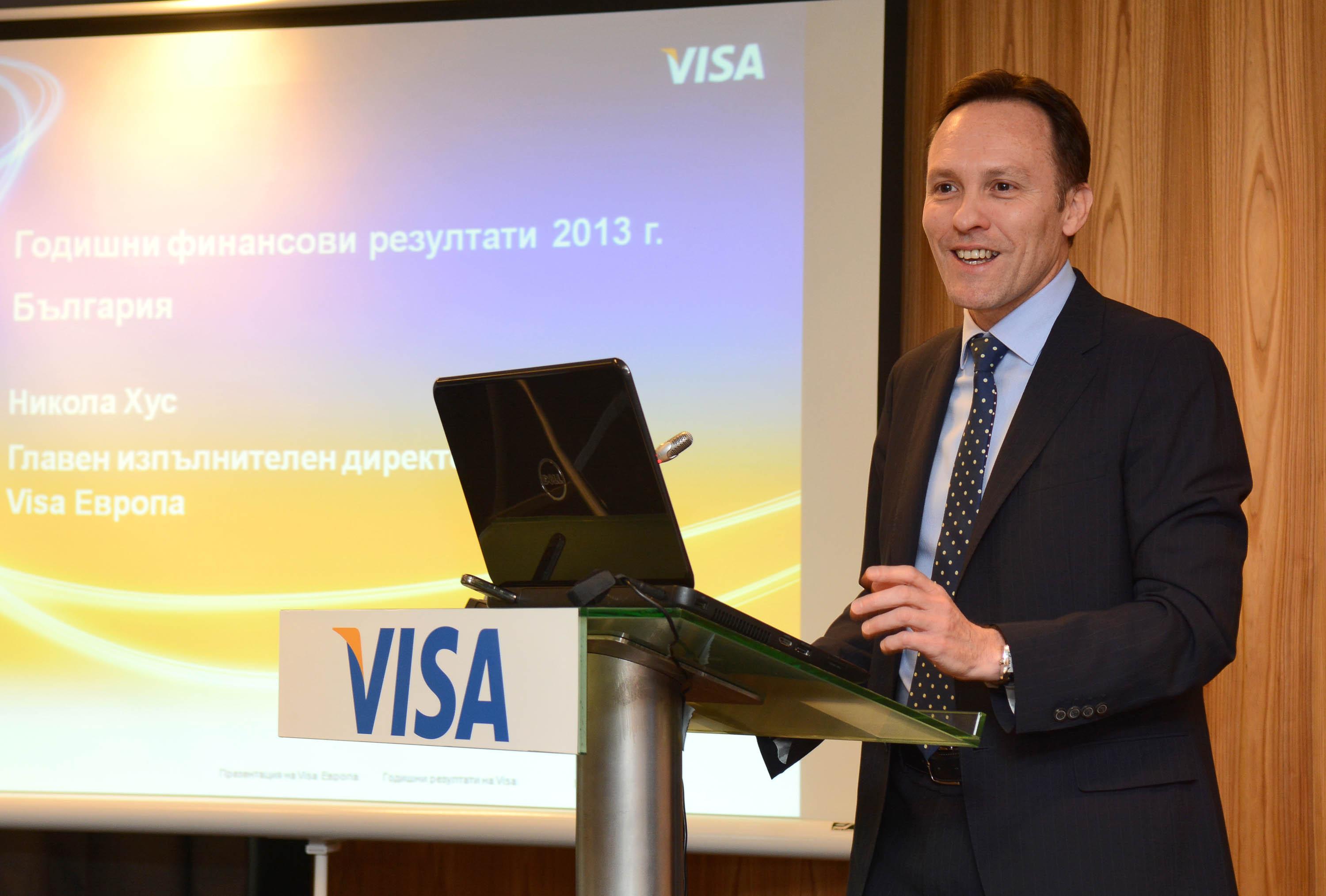 Обемът на изхарчените средства при търговци с карти Visa, издадени от български финансови институции, нараства с 27% на годишна база и надхвърля 1,148 млрд. евро. Електронните разплащания в България отчитат стабилен ръст през 2013 година по данни на технологичната компания Visa Европа, която днес обявява своите годишни финансови резултати за периода октомври 2012 – септември 2013. Специално за да представи постиженията, в България пристигна Никола Хус, новият главен изпълнителен директор на компанията.