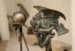 Изключително атрактивна изложба от гладиаторски шлемове в естествена големина показват авторите-пластици Васко Бърдаров, Лилия Бърдарова и Емилиян Бонев от "Бърд арт студио". Тримата изработват реквизит за холивудски продукции, но тук са съчетали историческата действителност с творчески поглед върху темата. Експозицията е в римския амфитеатър в основите на столичния хотел до 25 май тази година. 23.04.2014 |