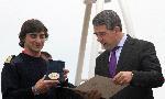 автор: Любомир Бенковски - Бенджи Президентът Росен Плевнелиев връчва поздравителен адрес и плакет на капитана на Калиакра Делян Радев