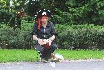 С настъпването на летния туристически сезон, уличните артисти се пренасят към морето с надеждата за по-платежоспособни клиенти. Днес фотограф на БУЛФОТО забеляза екзотичен пират, препечалващ в Градската градина на Бургас.