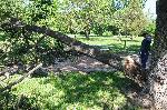 Проливен дъжд с градушка валя снощи в София. Дъждът е придружаван със силен вятър и гръмотевици. От стихията дърво в Юния парк се сгромоляса напряко на алеята.