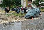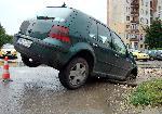 Лек автомобил пропадна в локва в пловдивския квартал "Тракия" близо до блок 106, видя репортер на Plovdiv24.bg.  Инцидентът е станал минути преди 14,00 часа днес. Според свидетели дамата, която е управлявала фолксвагена, е била шокирана от внезапното пропадане. Според хора, живеещи в района, на въпросното място вчера е правен ВиК ремонт. От думите им стана ясно, че след него мястото е било посипано с пръст, но никакви знаци не са предупреждавали водачите на МПС за очакващата ги опасност, а днешният дъжд вероятно допълнително е спомогнал за пропадането. За щастие няма пострадали при нелепия инцидент. Час след него лекият автомобил все още не бе преместен от мястото, а представители на пловдивската полиция правеха оглед на щетите по возилото. 04.06.2014 |