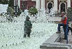 Интересна гледка събуди любопитството на софиянци на фонтана пред Народния театър. Облечен в гумирани дрехи мъж се разхождаше между бликащите струи с клещи в ръка. Оказа се, че от Столична община прочистват струйниците на фонтана, запушени с листа от бурята. 11.07.2014 |
