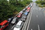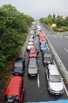 Дълга колона от автомобили се образува заради наводнения път в отсечката Атия - Черноморец