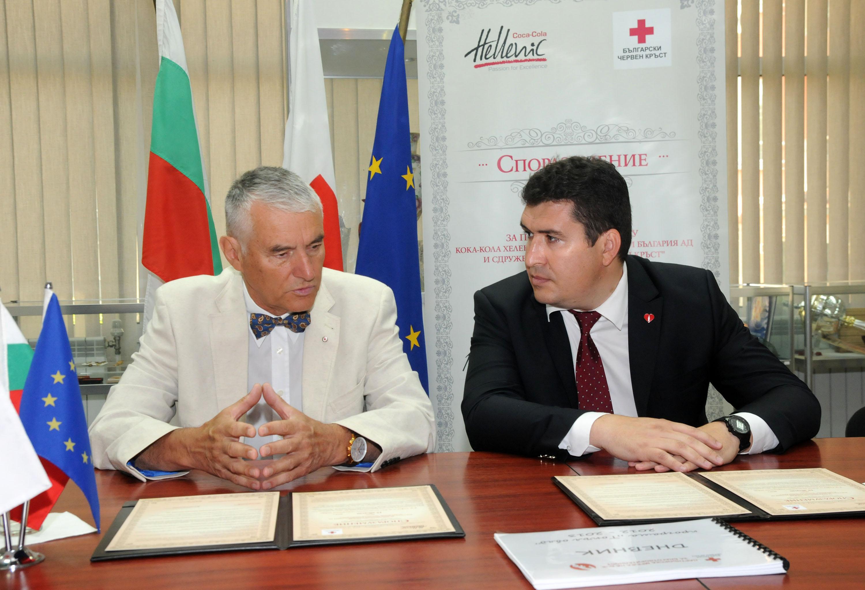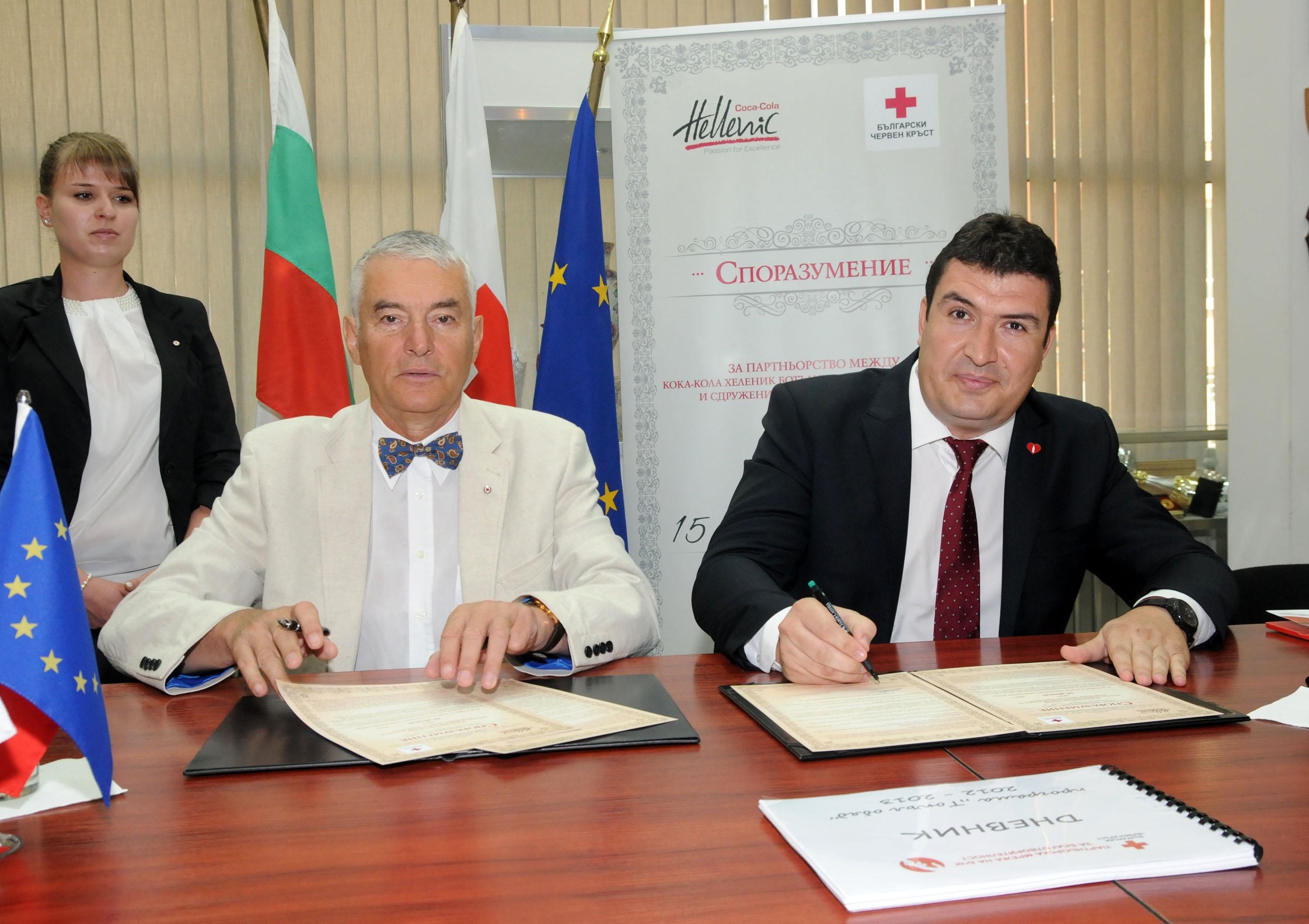 Изпълнителният директор на Кока-Кола ХБК България Светослав Атанасов и председателят на Българския Червен кръст Христо Григоров подписаха днес на специална церемония Генерално споразумение за партньорство. Целта на документа е координиране на усилията на двете страни при разработване на програми и проекти за съвместни действия, насочени към извънредни ситуации, природни бедствия, подкрепа на хора в неравностойно положение и други. Като част от споразумението, Кока-Кола ХБК България ще осигурява топъл обяд за 50 деца в неравностойно положение от Софийска област през учебната 2014/2015 година по програма на БЧК. Компанията ще си сътрудничи с Българския Червен кръст в рамките на Партньорската мрежа за благотворителност.
