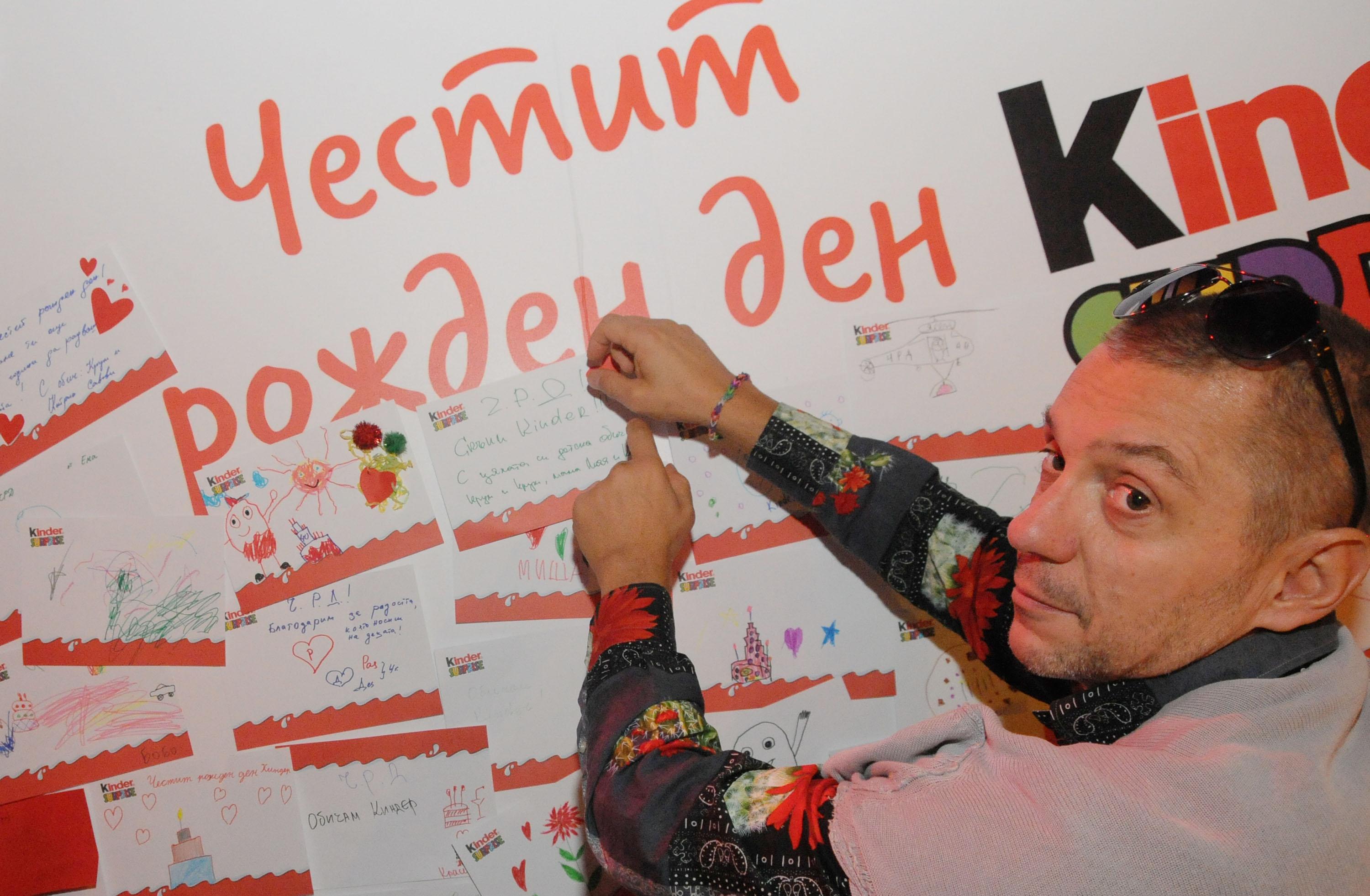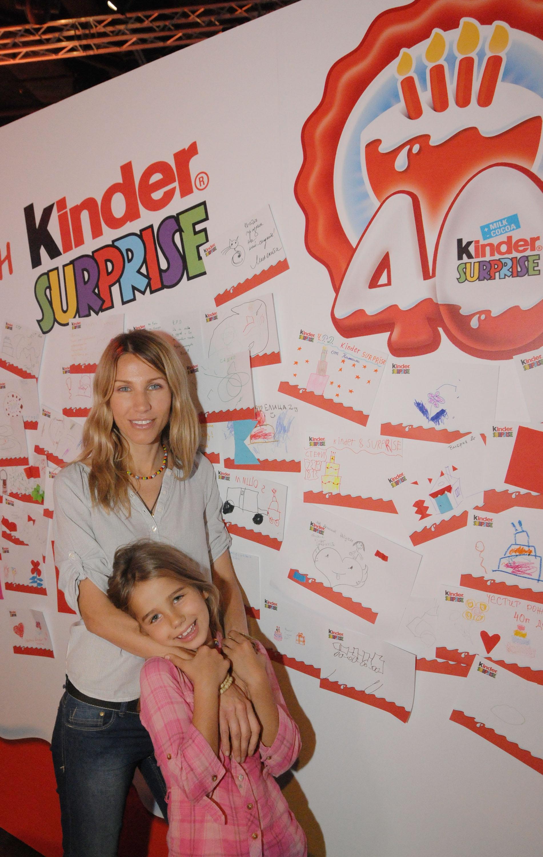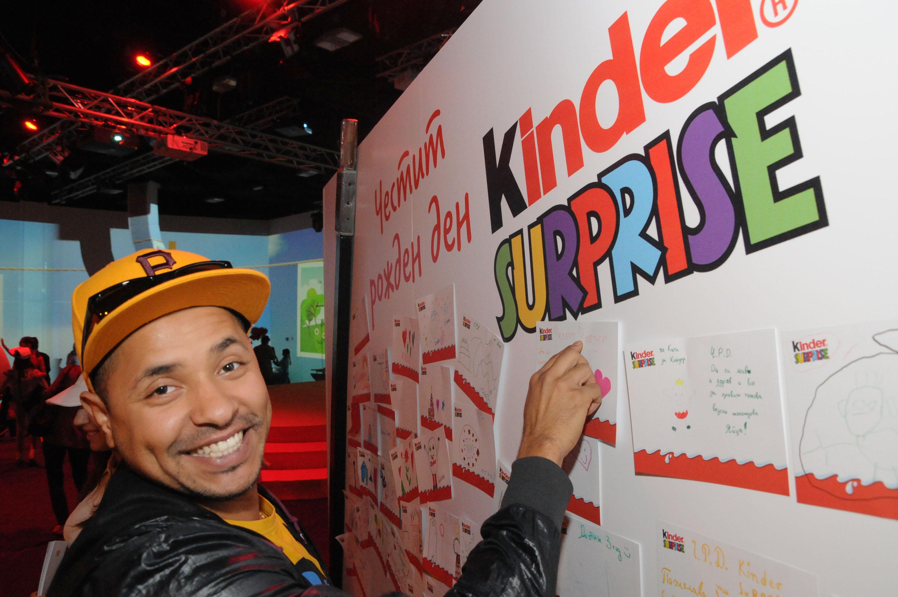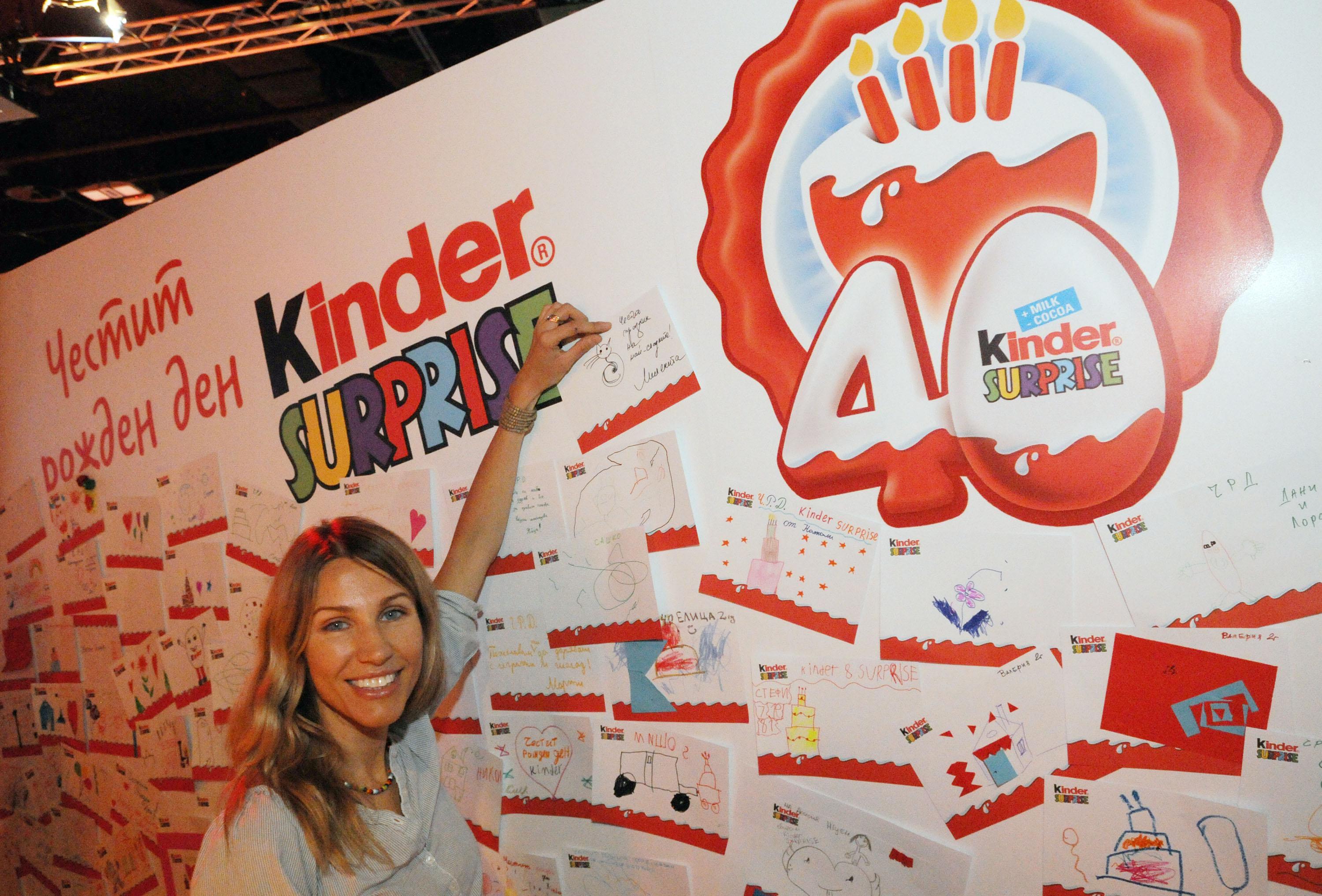 Днес Kinder Surprise празнува 40-тия юбилей на малките изненади със специално събитие в Sofia Event Center - София, на което са поканени всички малки и големи почитатели на марката.  В шестте тематични зони, гостите имат възможност да създадат гигантска поздравителна картичка, да се потопят в приключенията на духчето Фантомини в неговата огледална стая, да играят с големи сапунени балони, създадени от още по-големи клоуни, да се гримират като любим герой на Kinder Surprise или просто да запечатат незабравими спомени на специален фотокът. За добрата атмосфера Киндерино е подготвил музикални и танцови представления на детски формации и още много изненади. Сред специалните гости на рождения ден бяха Мая и Крум Савови с близнаците си Катрин и Крум. Заедно със своите родители те подготвиха красиви поздравителни картички за рожденика и не пропуснаха да се снимат с него. Певицата Миленита също се присъедини към празника. Тя и децата й се прехласнаха по гигантските сапунени балони и се превърнаха в мини героите на Kinder в къта за рисунки върху лица. Фурор сред гостите предизвика с появата си любимецът на тийнейджърите Venzy, който се впусна в мистериозно приключение в стаята на духовете с Фантомини.