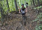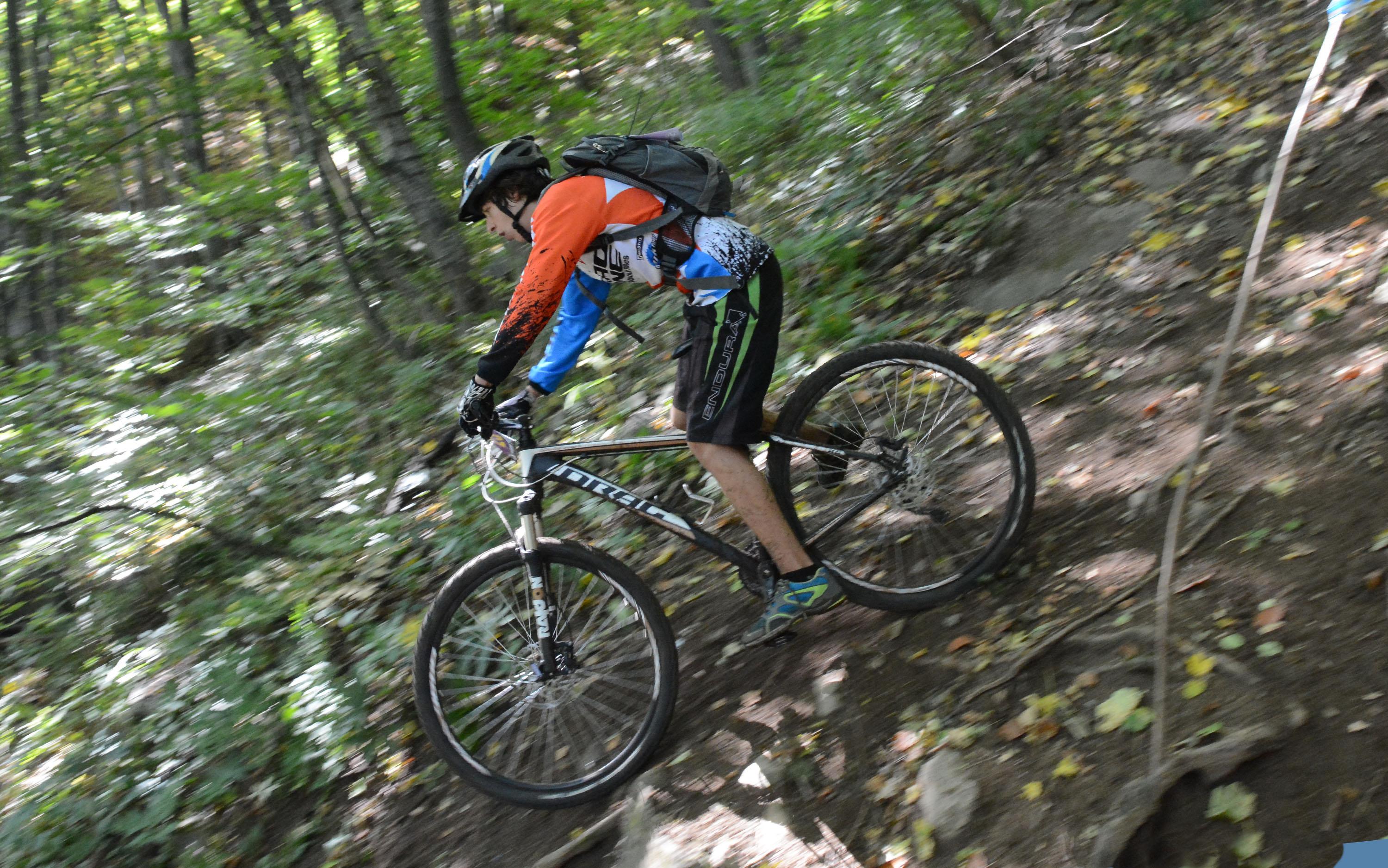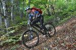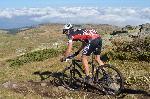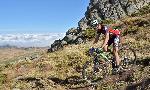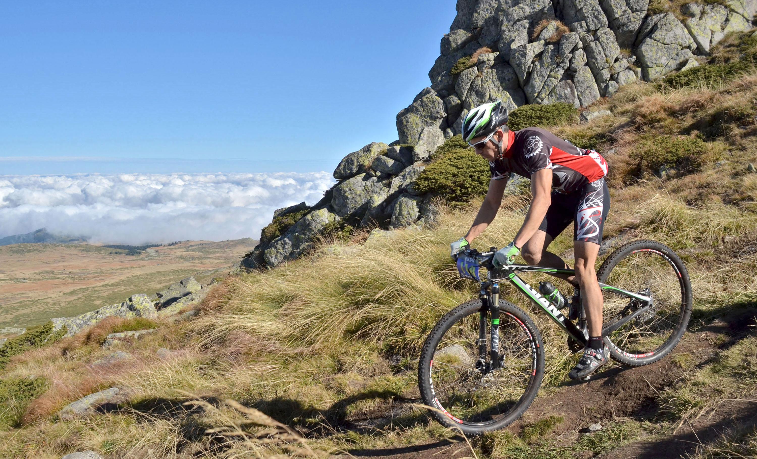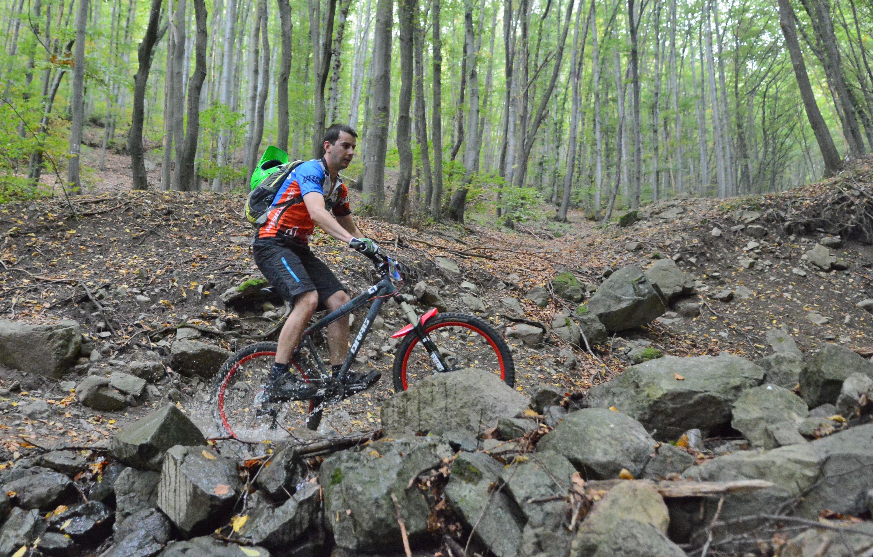 автор: Евгени Димитров Състезател носи на гръб велосипеда си през трудно трасе
