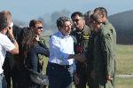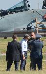 автор: Евгени Димитров Президентът Росен Плевнелиев поздравява командващия ВВС генерал Румен Радев след ефектния и труден полет