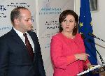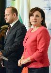 "Днес ГЕРБ посочи своя лидер като кандидат за министър-председател и получи подкрепата на Реформаторския блок", посочи Кънев. Румяна Бъчварова от ГЕРБ обяви, че кабинетът, който партията й ще предложи, включва 18 министри и трима вицепремиери. Предвиден е и министър от АБВ. Радан Кънев добави, че блокът ще има един вицепремиер без портфейл и шестима министри. Бъчварова подчерта, че е предвидено кабинетът да управлява цял мандат от 4 години и това ще бъде записано в коалиционното споразумение. 04.11.2014 |