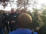 Два автобуса с германски радикални активисти на възраст между 20 и 35 години тръгнаха днес сутринта от Ямбол към района на село Голям Дервент, където обаче ги чакаше засилено полицейско присъствие. Последваха едночасови преговори с шефа на "Гранична полиция" Захарин Пенов за допускането на участниците в пърформънса до телената ограда. Някои от тях дори се опитаха да преминат очертаната от граничната полиция и жандармерията ограда, но Пенов многократно обясни, че нямат разрешение да влязат до граничното заграждение. Освен това той ги предупреди, че в момента се извършва полицейска операция и е невъзможно да бъдат допускани каквито и да било лица в 300-метровата зона до граничната бразда, предава Българското Национално радио.