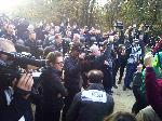 В деня на 25-годишнината от падането на Берлинската стена, групата, чиито членове се определят сами като "леви", "немски", "зелени" и "анархисти", искаше да среже символично оградата, издигната по границата с южната ни съседка.