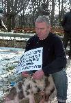Тук съм по повод 100 години на българското кино, които се навършиха на 13 януари. Тук съм с живото прасенце Пурко от филма “Господин за един ден”. Както казваше Тодор Колев “малкото слонче от Странджа планина” и аз ще добавя Големият Тодор Колев”, заяви Росен Марков. Ексцентричният зевзек от Варна обясни, че е решил да изрази уважението към големия български актьор Тодор Колев си по нестандартен начин и затова е взел със себе си малко прасенце с името Пурко. “Тук съм, за да уважа големия български актьор Тодор Колев. Избрах Пурко, защото това е един от най-големите филми на актьора. “Тодор Колев е Галант и Голям”, добави Маринов и разтълкува единия от плакатите си. На плаката бе изписано “100 години БГ кино Тодор Колев е Галант”, като отправката е към първия български филм “Българан е галант”. 15.01.2015 |