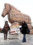"За Земята" организира посещението на Троянския кон в България. С него се противопоставят на ТТИП, което поставя корпоративните интереси над нуждите на хората и планетата.  Те се обявяват против стандартите за храните да бъдат отслабени, храни с ГМО, добива на шистов газ и корпорациите да съдят страната ни за въвеждане на закони и политики, които защитават здравето и околната среда. Днес, пред паметника на Съветската армия, те заедно казаха „Не на ТТИП!“ 08.04.2015 |