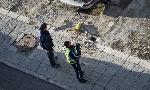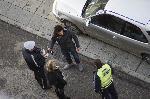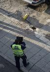 Полицаи проверяват документите на шофьора, счупил по непредпазливост крана за газта.