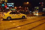 София - Инцидент с такси върху трамвайна линия