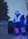 Накичен със светодиодите на кибер костюма, неизвестният подскачаше и закачаше хората, дошли да видят новооткрития паметник. В един момент "изгаси" светлинките и избяга в неизвестна посока. 12.06.2015 |