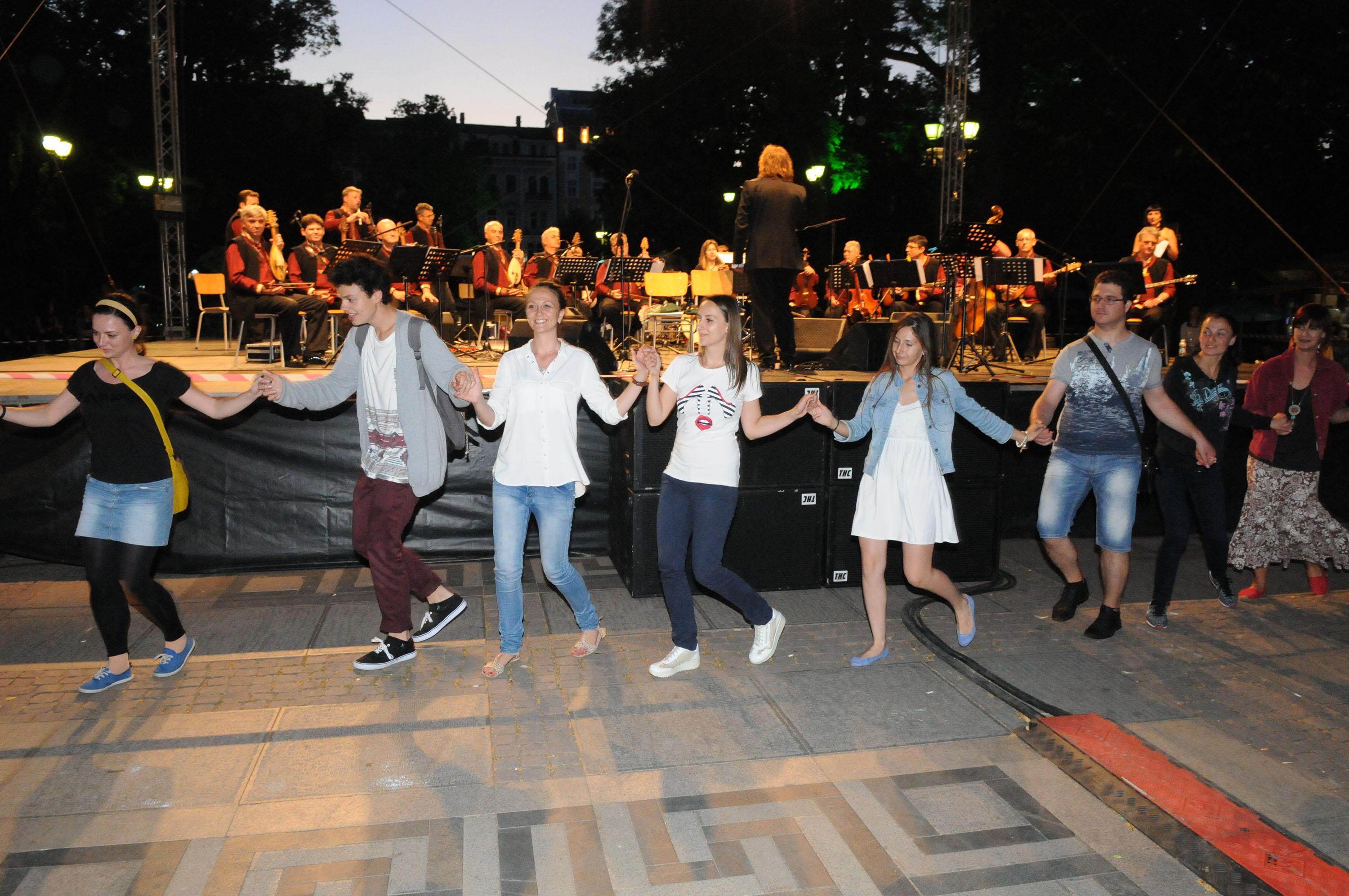 Фестивалът започна снощи с фолклорните виртуози от Оркестъра за народна музика с диригент Димитър Христов. Солисти са любимците на публиката Нели Андреева, Боряна Василева и дуото Христина Белева и Петър Миланов. 17.06.2015 |