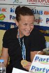 Станилия Стаменова, която стана световна шампионка на 200 метра едноместно кану, показа златния медал на специална пресконференция в пресклуб “България“. Българката завоюва второ голямо отличие през 2015 година, след като през май защити и европейската си титла в тази дисциплина. 27-годишната състезателка спечели първи златен медал от световно първенство, след като спря хронометрите на 48.717 секунди във финал "А" на шампионата в Милано.