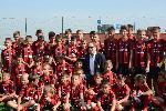 Легендарният защитник на Италия и световния футбол Франко Барези посети днес спортен комплекс „Царско село“. Бившият капитан на "Милан" и „Скуадра адзура“ се срещна с децата, участващи в турнира "Милан джуниър камп". Целта на проекта е да популяризира клуба на "росонерите" и футбола сред подрастващите. Пет дни деца и юноши между 5 и 17 години тренират по програма на италианския гранд "Милан". Те са ръководени от петима лицензирани от "Милан" треньори, като разчитат на помощ на още толкова български специалисти. Един от четвъртите в света - Златко Янков, е управител на кампа. Трите най-добре представили се момчета печелят участие на финален турнир в Милано, заедно с победителите от останалите кампове. 55-годишният Барези, който е избран за Футболист на 20–ти век в Италия, е символ на Милан, след като цялата му кариера между 1977 и 1997 година преминава при "росонерите". 04.09.2015 |