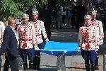 автор: Стефан Марков Министърът на културата Вежди Рашидов, Областният управител Веселин Пенев и екссъветникът от СДС Николай Гацев (с индианските пера)