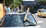 След удара, желязното съоръжение се стоварило върху наблизко паркиран „Мерцедес“.