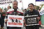 Говорителят на Воински съюз „Васил Левски” – Владимир Русев заяви, че чрез този протест изразяват подкрепа си към на граничния полицай, който е изпълнил клетвата си. Протестът ни е свързан с това, което се случи вчера с граничния полицай. Взехме решение да пристигнем тук, за да види народът, първо, че има някой, който мисли и е готов за него да защитава страната и второто - да изразим подкрепата си за полицаите, които 25 години са извергнати и реформирани, дезинформирани и изпращани на границата да гладуват и да студуват без средства, както и без достатъчна техника, без социална и друга защита, докато горе престъпните продажни партийци разграбват милиарди от държавата", обяви пред БНР Русев. 17.10.2015 |