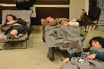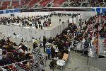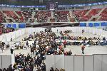 Започнаха да слагат походни легла в зала "Арена Армеец", където хиляди хора чакат повече от 24 часа заради забавеното приемане на протоколите за местния вот.