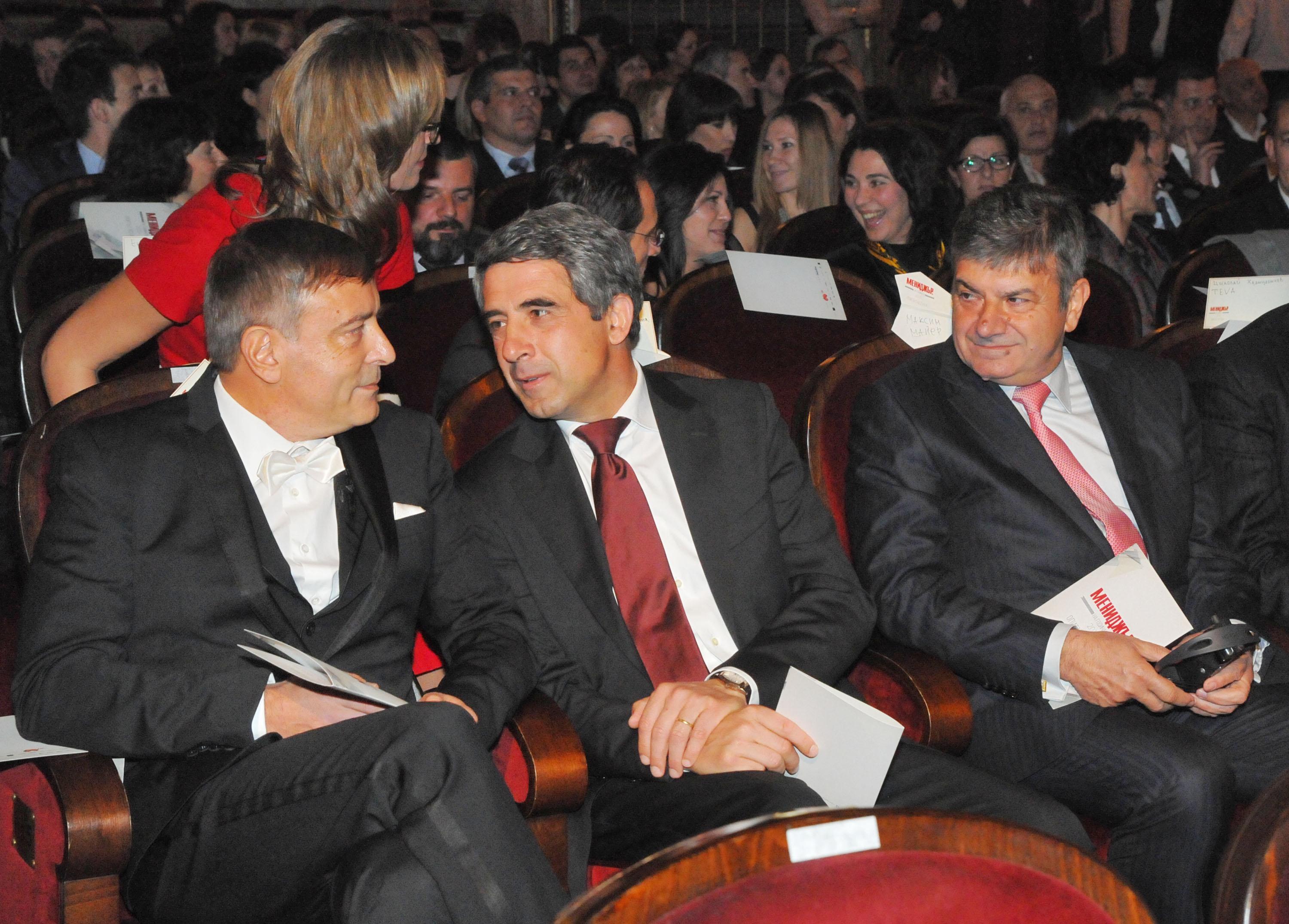 автор: Стефан Марков Президентът Росен Плевнелиев и издателят Васил Мирчев награждават Петър Андронов, главен изпълнителен директор на „СИБанк” |