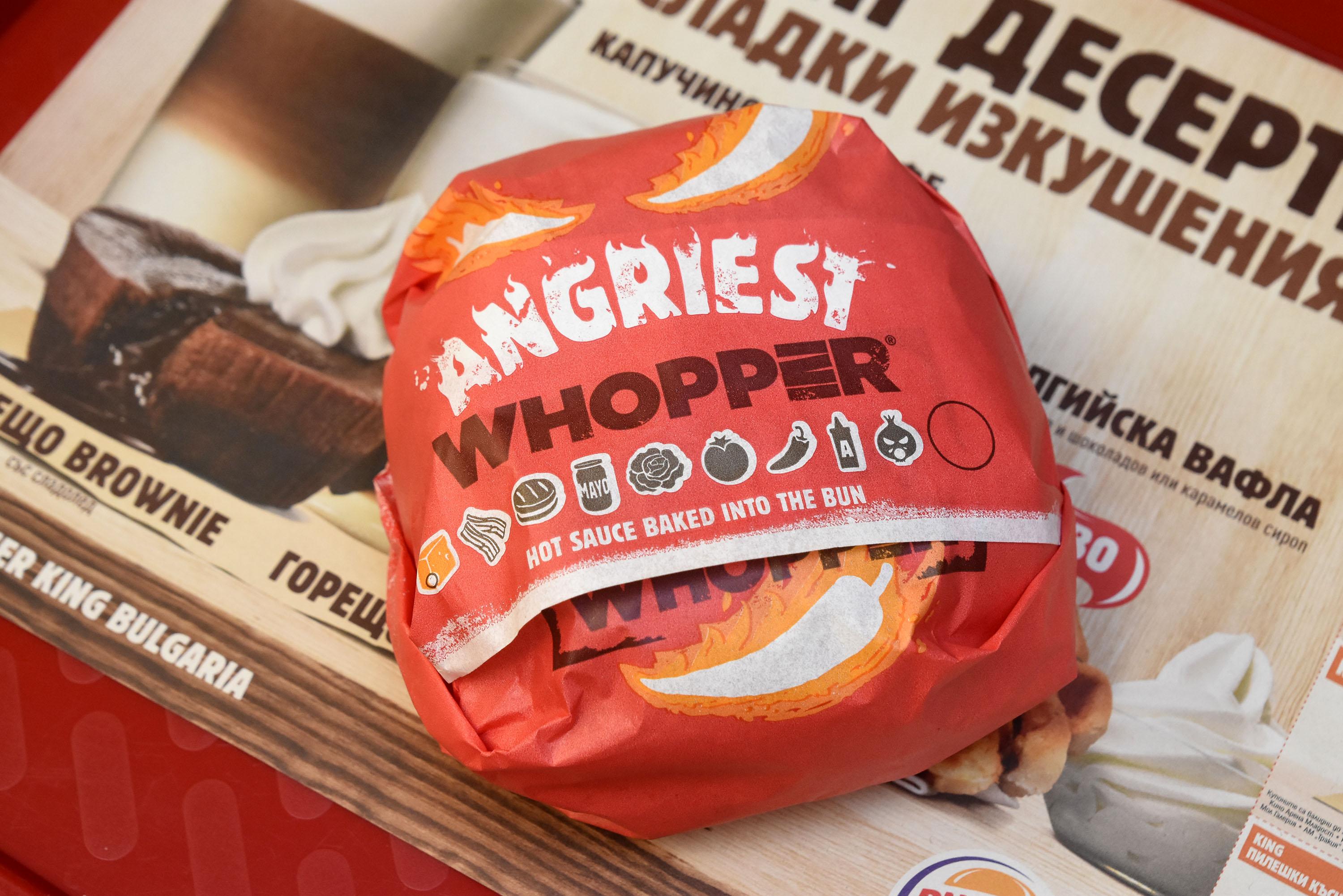 Веригата ресторанти за бързо хранене BURGER KING® представи Angriest WHOPPER® – изключително приключение за сетивата. Всяка хапка на Angriest WHOPPER® е като изригващ вулкан от вкусове. Новият бургер е с хрупкав “Angry” лук, пикантен сос и апетитни халапеньос, добавени към току-що свалено от огъня телешко и сирене „Чедър”, салата айсберг и свежи домати в огнено червено хлебче, изпечено със специален лют сос.