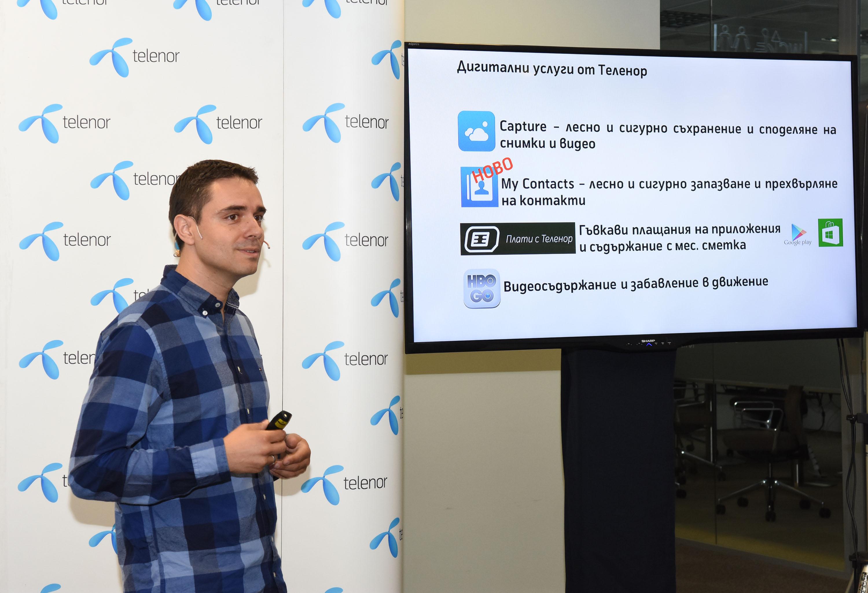 Дигиталните услуги ще бъдат съществена част от стратегията на Теленор Груп и Теленор България и компанията ще се фокусира все повече върху развиването и предлагането на такива услуги, мобилни приложения и решения , заяви главният изпълнителен директор на Теленор България Стайн-Ерик Велан по време на събитието Telenor #DigitalDay. Решението за това се базира на ръста в потреблението на мобилен интернет, увеличаването на броя на потребителите на услугите за пренос на данни и на проникването на смарт-устройствата и най-вече на тенденциите в потребителските предпочитания и навици, каза още г-н Велан. Дигиталните услуги са сферата, в която ще вложим средства и усилия, за да можем да осигурим на клиентите си още възможности за комуникация, споделяне на съдържание и забавление. За Теленор, развитието и предлагането на такива услуги е естествена стъпка в трансформацията на компанията в предпочитан дигитален партньор на своите клиенти и гарантира нови възможности за растеж, коментира г-н Велан. През последните три години, ние положихме основата на тази трансформация с пълната технологична подмяна на мрежата на компанията и старта на 4G услугите на Теленор. Благодарение на това и на сътрудничеството ни с другите компании в Теленор Груп и с външни партньори, вече предлагаме конкретни нови услуги за нашите клиенти, каза Велан. По време на #DigitalDay, мениджърът Отдел „Потребителски услуги“ на Теленор България г-н Брано Джурович представи най-новите дигитални услуги на компанията. От 1 юни, Теленор предлага на българските потребители „облачната“ услуга за съхранение и споделяне на снимки и видео Capture, разработена от Теленор Груп, която има над един милион потребители по цял свят. От търговския старт на услугата в България, тя вече има над 10 000 потребители, които се увеличават с по около 1000 на ден. Клиентите на Capture в България ползват средно по 2,4 GB пространство за съхранение и вече са качили в облака над 3 милиона снимки и видео файлове, като средно на ден качените с услугата файлове достигат 250 000. Услугата е безплатна и с много високо ниво на сигурност, подчерта г-н Джурович. Безплатното приложение Мy Contacts, също разработка на Теленор Груп, ще дебютира в България до броени дни. То предлага бързо, лесно и удобно съхранение на контактите от телефона на потребителя в облака и позволява безпроблемно прехвърляне и копиране на контакти от едно устройство на друго, независимо от ползваната операционна система. Сред дигиталните услуги, които Теленор предлага на своите клиенти е и услугата Плати с Теленор, чрез която потребителите могат лесно, сигурно и гъвкаво да управляват покупките на приложения и мобилно съдържание в Google Play и Windows Phone Store, като стойността на покупките се добавя към тяхната месечна сметка към Теленор. Средната стойност на покупките, направени чрез услугата Плати с Теленор в Google Play, например, в момента възлиза на 4,50 лв. 16.06.2016 |