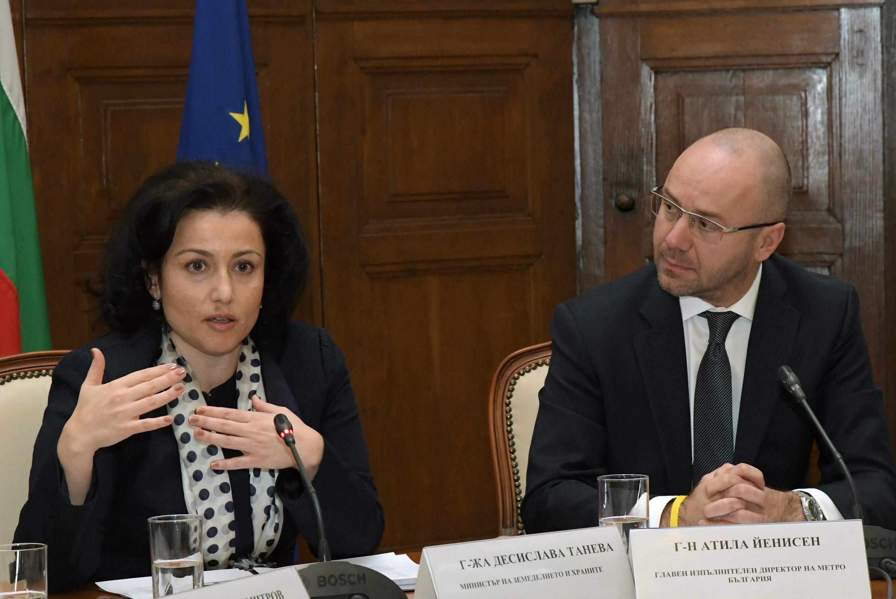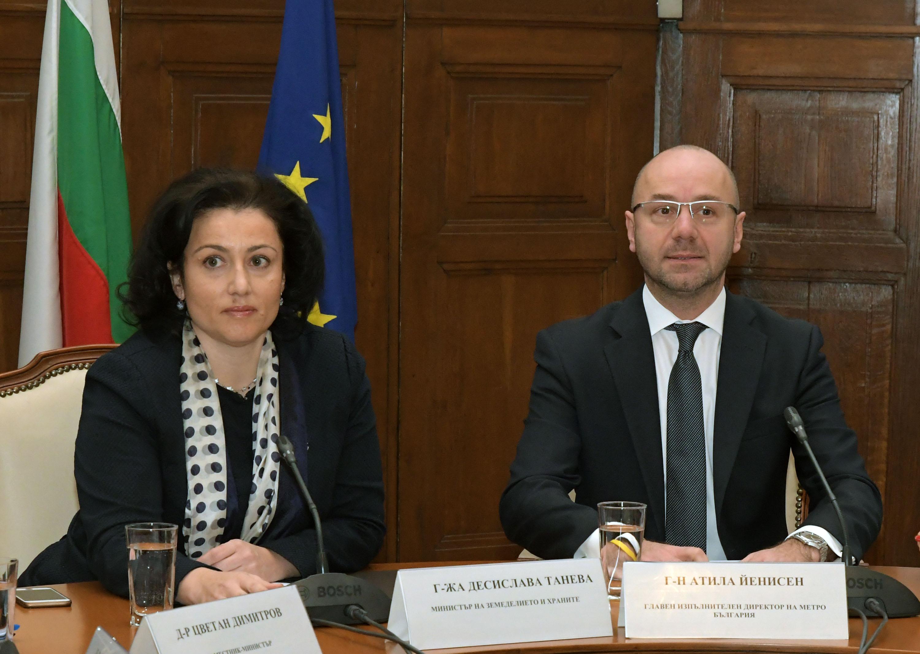 Министърът на земеделието и храните Десислава Танева и главният изпълнителен директор на МЕТРО България Атила Йенисен представиха програма, която ще улесни достъпа на българските фермери до търговската мрежа. Министър Танева заяви, че програмата е продължение на кампанията „Подкрепяме българското“, по време на която земеделските производители в страната са повдигнали въпроса за отношението на търговските вериги към фермерите. „Веднага стартирахме преговорите с веригите, като основната цел е да бъде улеснен достъпът на българските фермери до търговската мрежа. „МЕТРО“ беше първата, с която постигнахме резултат, който е с взаимен интерес“, - подчерта Десислава Танева и допълни, че разговорите с останалите вериги продължават.
