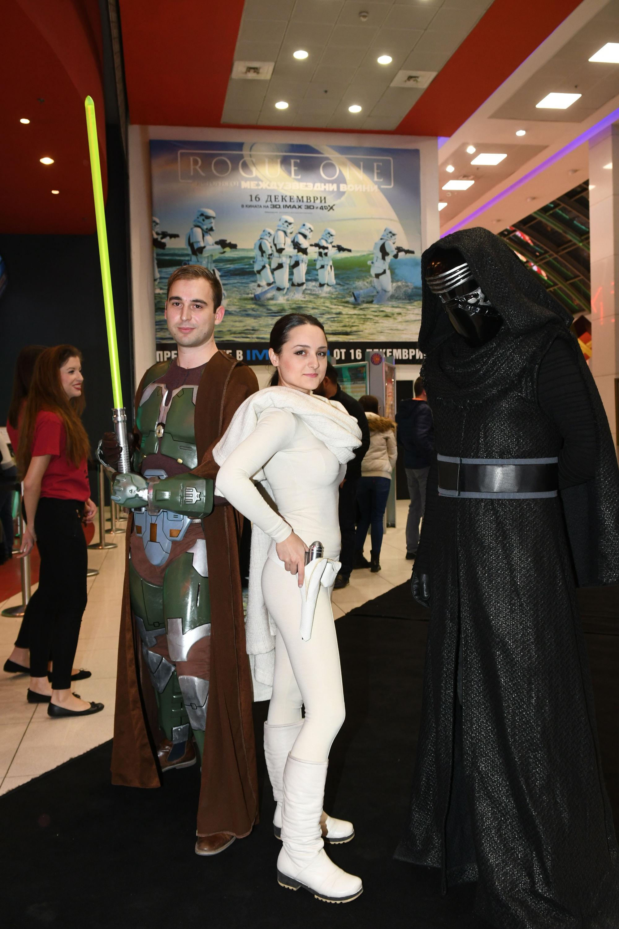 На гала предпремиерна прожекция в София вчера се събраха стотици мегафенове на култовата сага и се наредиха сред първите редици на Бунта с Rogue One: История от Междузвездни войни. Пълната IMAX зала се превърна в емоционално преживяване за присъстващите, които очакваха първия самостоятелен филм от поредицата с огромно нетърпение. Освен традиционните светлинни мечове в залата присъстваха Дарт Вейдър, Кайло Рен, принцеса Леа, Рей и други герои от една далечна Галактика.