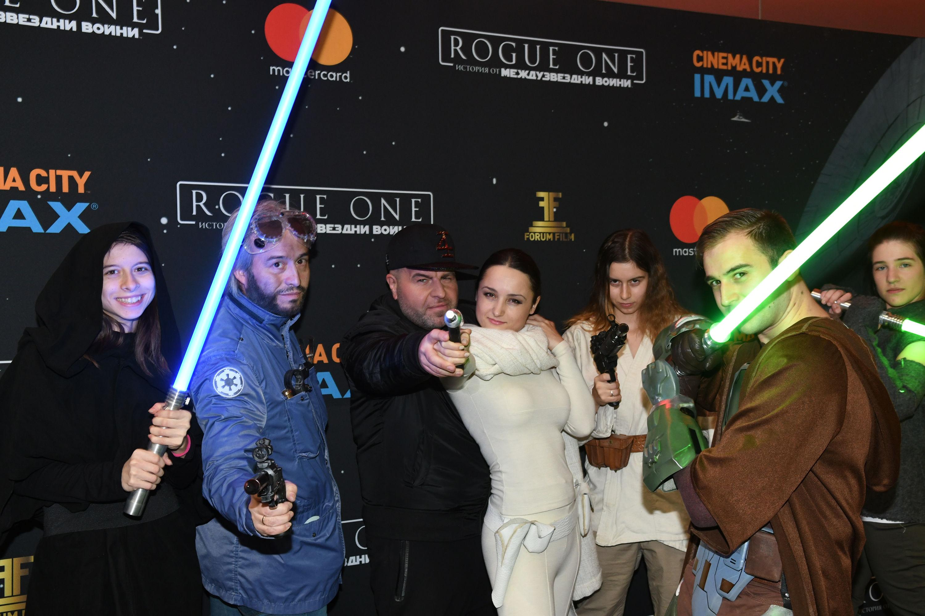 Атмосферата преди прожекцията беше нажежена от боеве със светлинни мечове, тематични бирени коктейли и вкусни изкушения с лика на Дарт Вейдър, които се превърнаха в истински хит не само сред децата, но и сред възрастните. В самата зала емоциите бяха нажежени до краен предел и през цялото време се чуваха смях, пляскане и възторжени възклицания при всяко намигване от екрана. Еуфорията от това да са сред първите в света, гледали Rogue One: История от Междузвездни войни, взеха връх след края на прожекцията, когато ентусиазираните фенове оцениха филма като „супер як“, „най-доброто, което очаквах, се сбъдна и то стократно“ и „чакам с нетърпение догодина“.