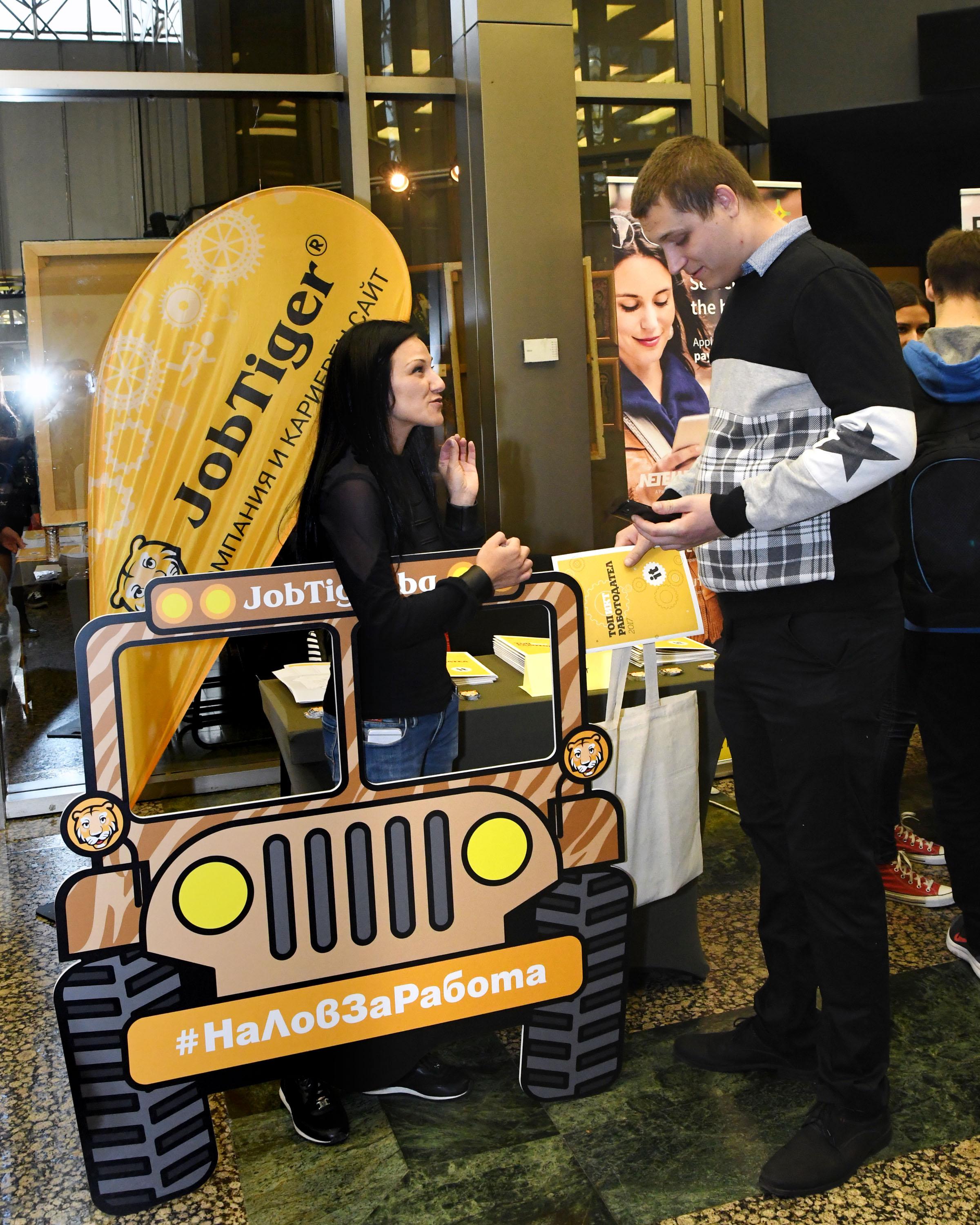 Проведеният вчера кариерен форум „Дни на кариерата“ – ИТ, Комуникации и Аутсорсинг доказа, че в България има работа за хора, които владеят чужди езици или имат ИТ квалификация. Осмото издание на изложението, организирано от най-големият доставчик на HR услуги за работодатели и търсещи работа в България – JobTiger , даде възможност на стотици студенти и млади специалисти, които търсят кариерно развитие в областта на информационните технологии и телекомуникациите да се срещнат с компаниите - лидери в секторите ИТ, Комуникации и Аутсорсинг и да открият своето ново работно място или възможност за стажантска програма.