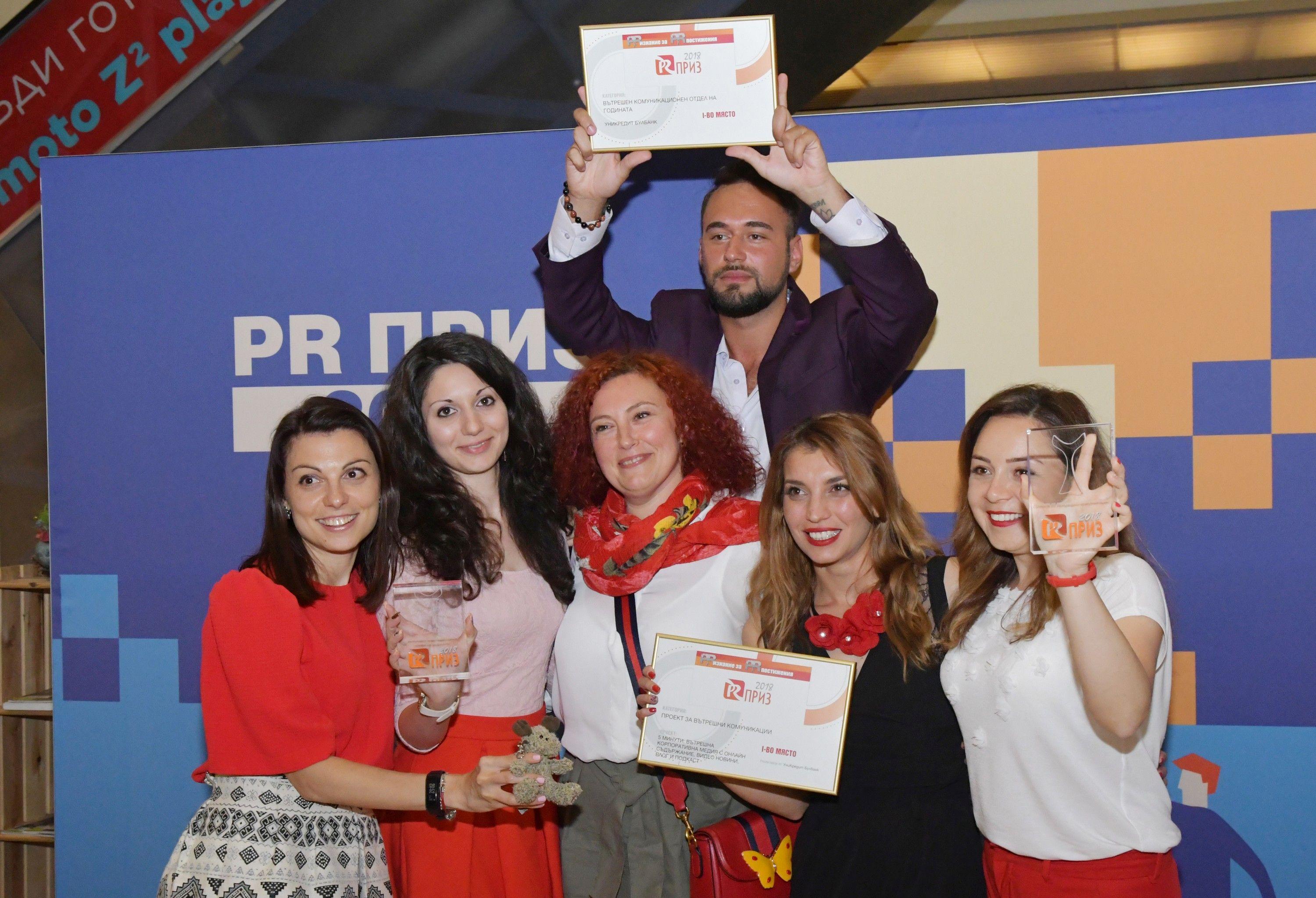 На официална церемония Българското дружество за връзки с обществеността (БДВО) връчи годишните си награди за постижения в областта на комуникациите – PR Приз 2018. „Вътрешен комуникационен отдел на годината“ стана екипът на УниКредит Булбанк с убедително представяне на вътрешните им планове за развитие на екипа и проекта им за вътрешна медия „5 минути“, който им донесе първо място и в категория „Вътрешни комуникации“. „Комуникационна агенция на годината“ стана United Partners със стратегията им в 3 стълба: екип, иновации, резултати, и с преструктурирането на екипа им в отговор на нуждите на клиентите.