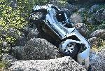 Джип "Тойота" "паркира" върху геоложкия феномен “Златните мостове” в Природен парк Витоша. Най-вероятно пътния инцидент е станал късно снощи или през нощта. Причина за катастрофата е несъобразена с пътните условия скорост. Към момента няма данни за тежко пострадали при инцидента, по автомобила са нанесени сериозни материални щети.