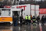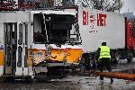Трамвай, движещ се по линия 20 и ТИР на фирма "Биомет" катастрофираха на столичния булевард "Проф. Цветан Лазаров" в близост до кръстовището с булевард "Асен Йорданов". Полицаи изясняват причините за инцидента. 04.04.2021