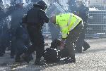 автор: Николай Варадинов Бомбичка,хвърлена от сектора на привържениците на Ботев,гръмва до полицай
