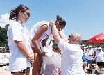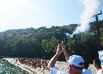 Силният вятър - 12 метра в секунда и вълна от 3 бала ги накара да вземат това решение. Останалите плувци се качват на спасителен катер и изпратени лодки, които ги отвеждат до брега.