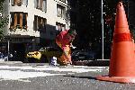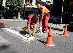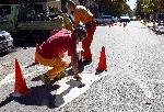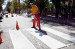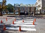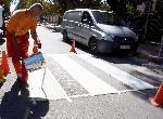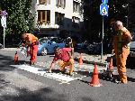В навечерието на новата учебна година служители на Пътна сигнализация освежават пешеходните пътеки в района на