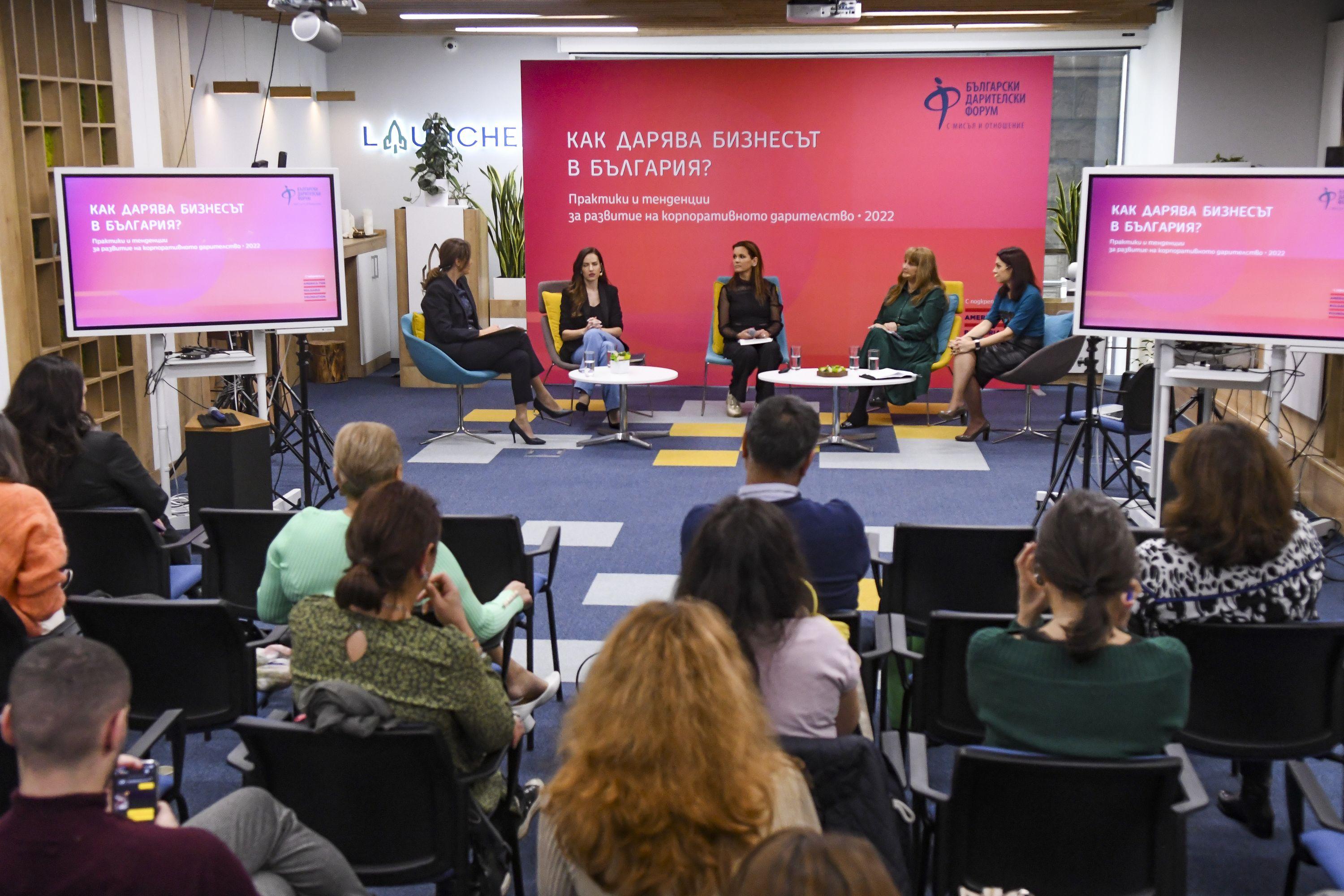 Над 50 представители на бизнеса и гражданския сектор се включиха в събитие на тема „Как дарява бизнесът в България?“, организирано от Български дарителски форум на 16 ноември 2022 г. в Launchee. На него бяха представени данни от проучване за дарителските практики сред компаниите, проведено по поръчка на БДФ от агенция „Алфа Рисърч“ през май 2022 г. Събитието бе открито от Теодора Бакърджиева, изпълнителен директор на БДФ, която открои позитивните тенденции от последните години и все по-стратегическия подход на бизнеса към дарителството и корпоративната социална отговорност (КСО). Геновева Петрова от агенция „Алфа Рисърч“ представи находките от проучването и акцентира както върху количествените данни, така и върху подходите и мотивите за даряване от страна на бизнеса. Проучването показва, че 88% от средните и по-големи компании са дарявали, а 64% правят това регулярно. Бизнесът откликва на спешни нужди и подпомага хора и общности, пострадали от хуманитарни кризи, но в същото време, голяма част от компаниите вече даряват дългосрочно и стратегически, показват още изводите от изследването. Във втората част на събитието се проведе панелна дискусия с участието на представители на големи компании дарители: Екатерина Анчева от УниКредит Булбанк, Захарина Вецева от TELUS Inte ational България, Ива Михова-Митровска от Кока-Кола ХБК България и Мирослава Георгиева от Фантастико Груп. Водещ на дискусията бе Доника Ризова – ПР експерт и журналист. 16.11.2022 |