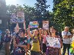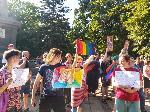 Друга група, която е срещу проявата, отправяше нецензурни викове срещу ЛГБТ общността. Сред тях също имаше много непълнолетни деца.