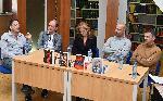 автор: Стефан С. Марков Мишел Бюси, Бернар Миние, преводачката Ива Дикова, Жером Лубри и Франк Тилие в библиотека „Филологии“ |