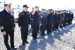 Той бе посрещнат с официална церемония. Сред присъстващите бяха началникът на Висшето военноморско училище флотилен адмирал проф. Боян Медникаров, проф. Христо Пимпирев, областният управител Андрияна Андреева и кметът Благомир Коцев. 03.04.2024