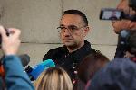 Пред сградата на Министерството на вътрешните работи се провежда брифинг след проведеното заседание на Оперативния щаб на МВР във връзка с динамичната метеорологична обстановка в страната