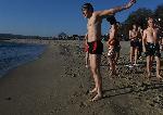 С плуване в студените морски води членове на клуб "Шотокан" с ръководител Емил Златев по традиция посрещнаха утрото на новата година.
