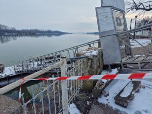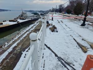 Местата, край речната дига, където са нанесени сериозни материални щети, са своевременно обезопасени със сигнални ленти.
